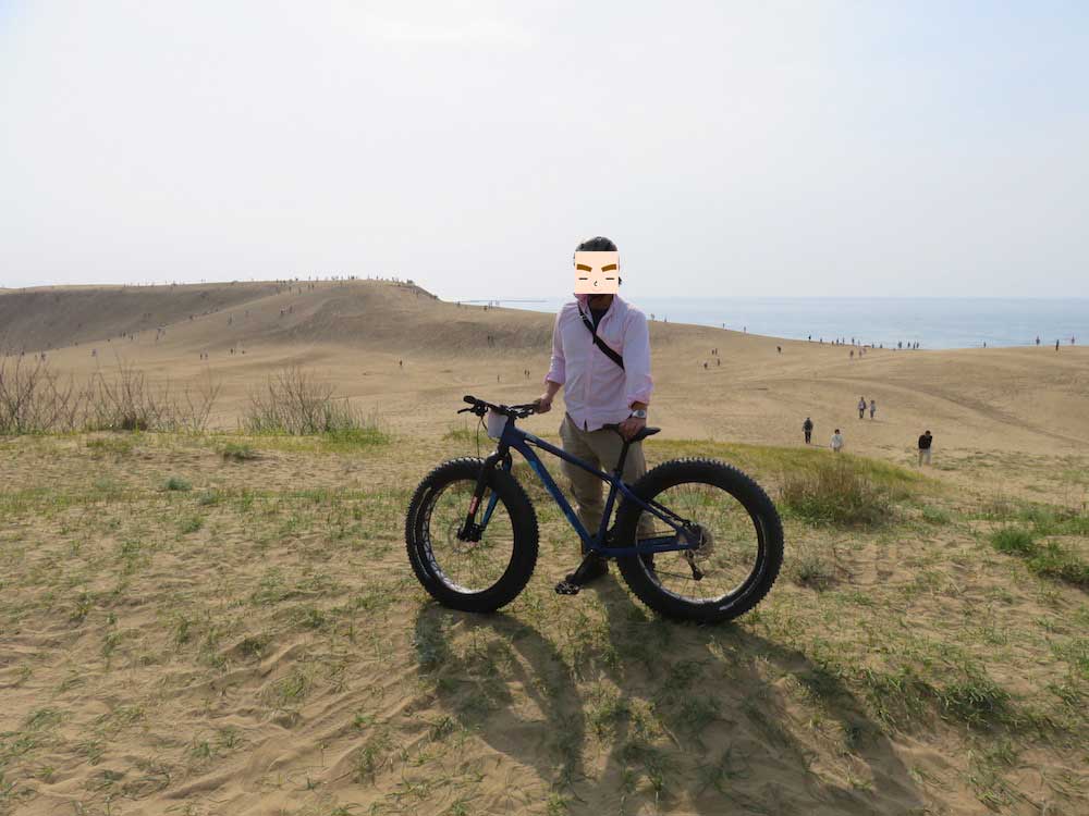 インストラクターと共に10段変速のファットバイクで砂丘の外周を走るが、砂地だから不用意に力を込めてべダルを踏むと砂を掻いて進まないし、後ろに重心をおくとウイリーしそうになるし、結構ハードな「ファットバイク」で終わった後は疲れ切って大変でしたが、いい思い出ができました。