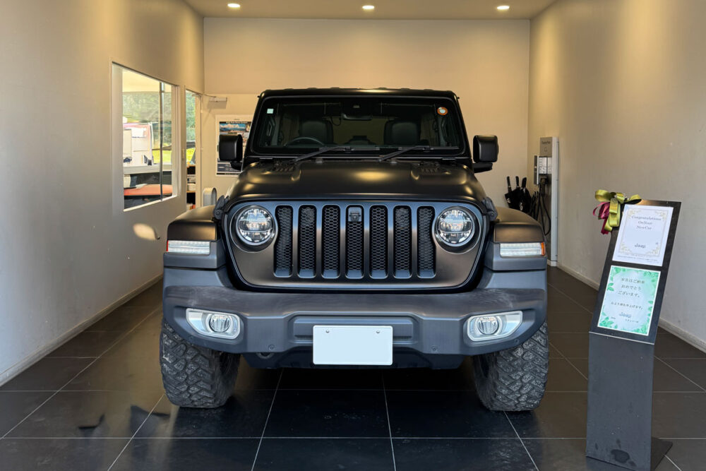 でも事前に調べたRUBICONも気になるのでステップつけて乗り降りしやすくなればいいかなと思い見積もりを出してもらおうとしたら他社の車両のようで他社の車両のようで一応断念して白色にしうようかと考えていたらマットブラックでオフロードっぽいタイヤの車両があったので購入しました。