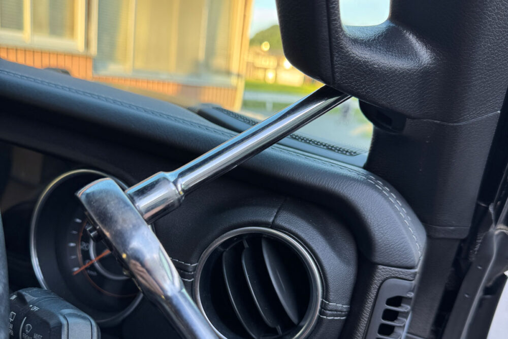 グラブハンドルのプラスチックカバーを手で外します